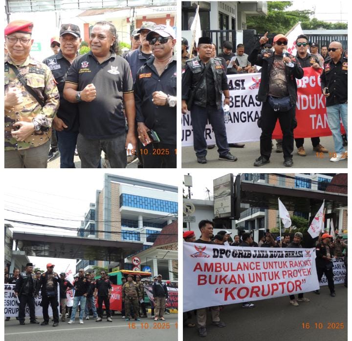 Organisasi Masyarakat GRIB Jaya Kota Bekasi menggelar aksi demo berjalan dengan lancar dan kondusif, GRIB Jaya juga melakukan konferensi pers untuk mengungkap dugaan kuat terjadinya penyimpangan dalam proses pengadaan mobil ambulans jenazah di Dinas Kesehatan Kota Bekasi untuk Tahun Anggaran 2024. Dalam pemaparannya, GRIB Jaya menyampaikan sejumlah temuan kejanggalan yang dinilai berpotensi merugikan keuangan negara hingga lebih dari Rp 2 miliar.