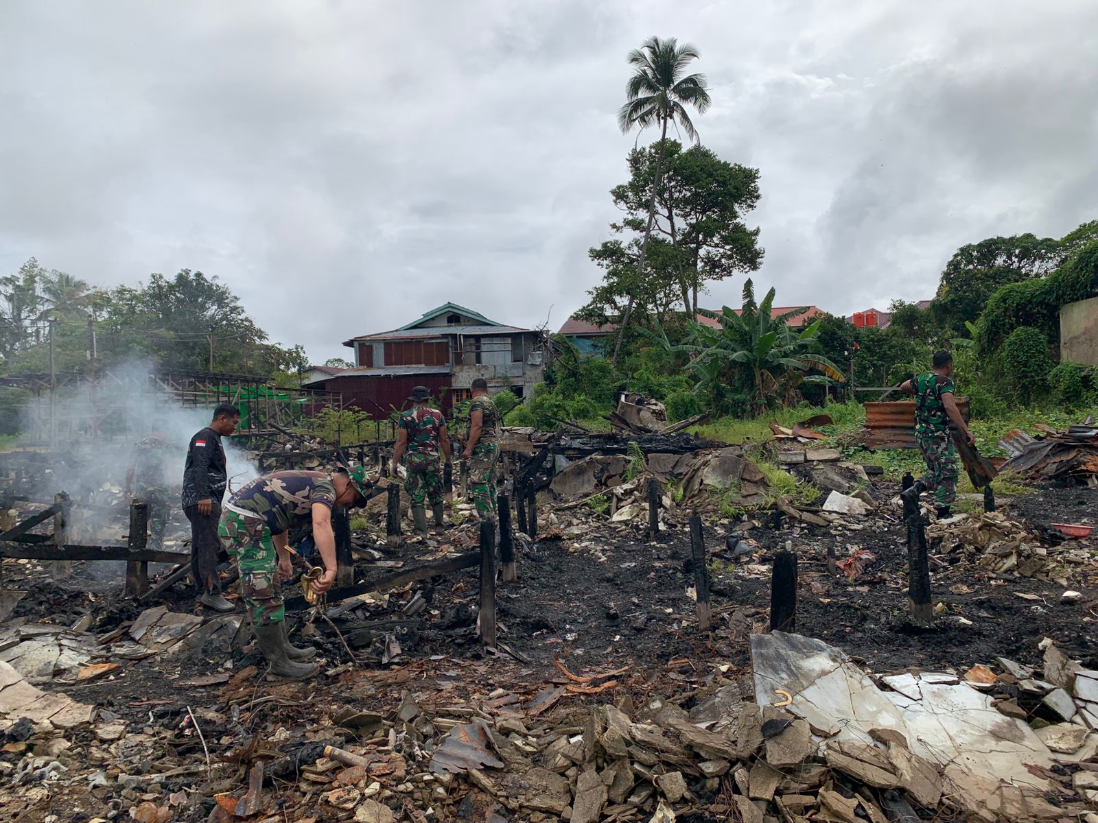 Sebagai bentuk kepedulian terhadap masyarakat yang terdampak musibah kebakaran, Koramil 1206-06/Putussibau Utara melaksanakan kegiatan gotong royong pembersihan sisa-sisa puing pasar yang terbakar di wilayah binaannya, Jumat (13/02/2026).