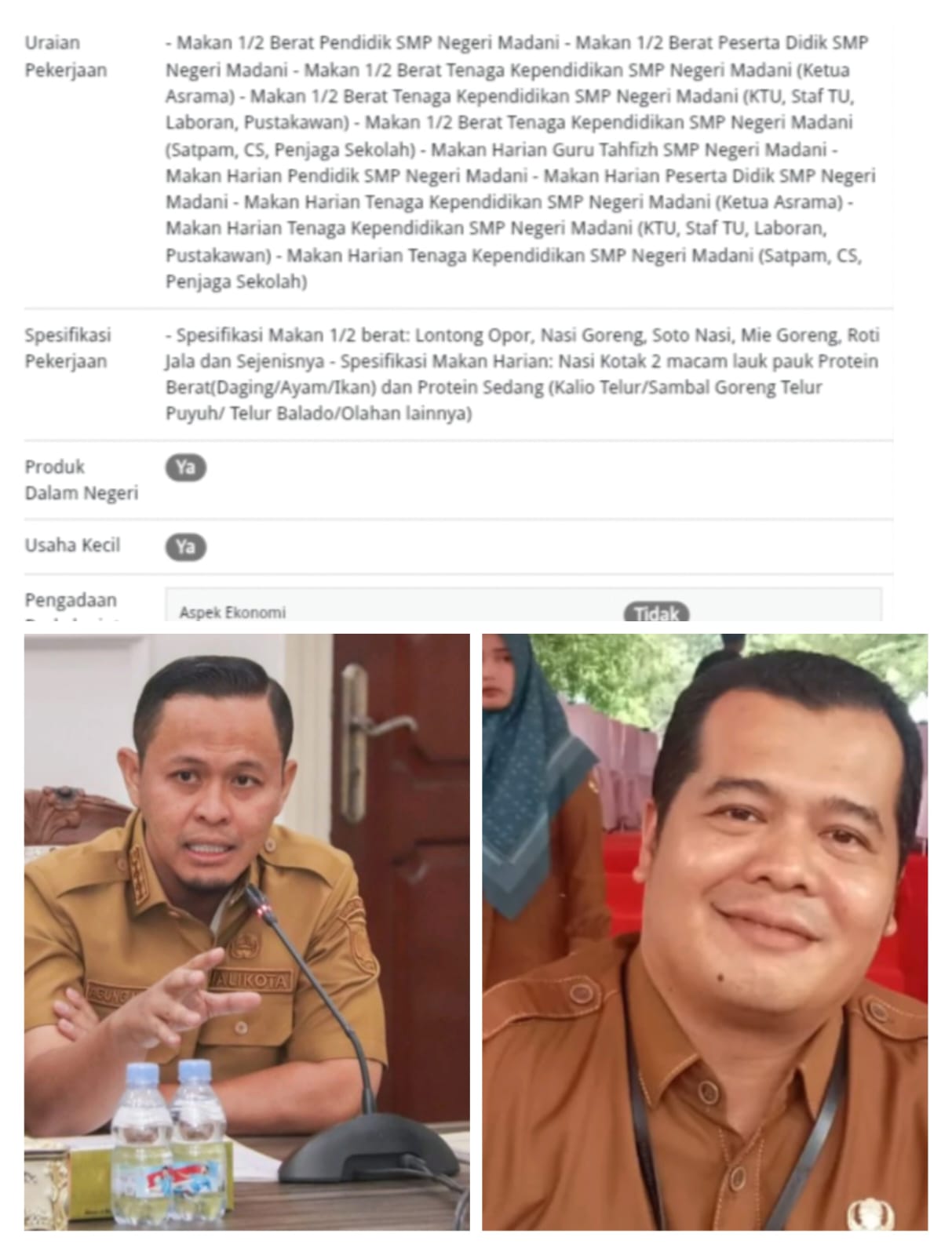 Dari kualitas makanan yang di sajikan untuk asrama SMP Negeri Madani Lontong opor, Nasi Goreng, Soto Nasi, Mie Goreng, Roti Jala, dan sejenisnya. Sepesial makan harian. Nasi kotak 2 macam lauk pauk protein berat, (Daging/ ayam / ikan) dan protein sedang (Kalio terlur/ sambal goreng telur puyuh/ telur balado/olahan lainnya) sebesar Rp.5.072.105.000. sumber APBD.