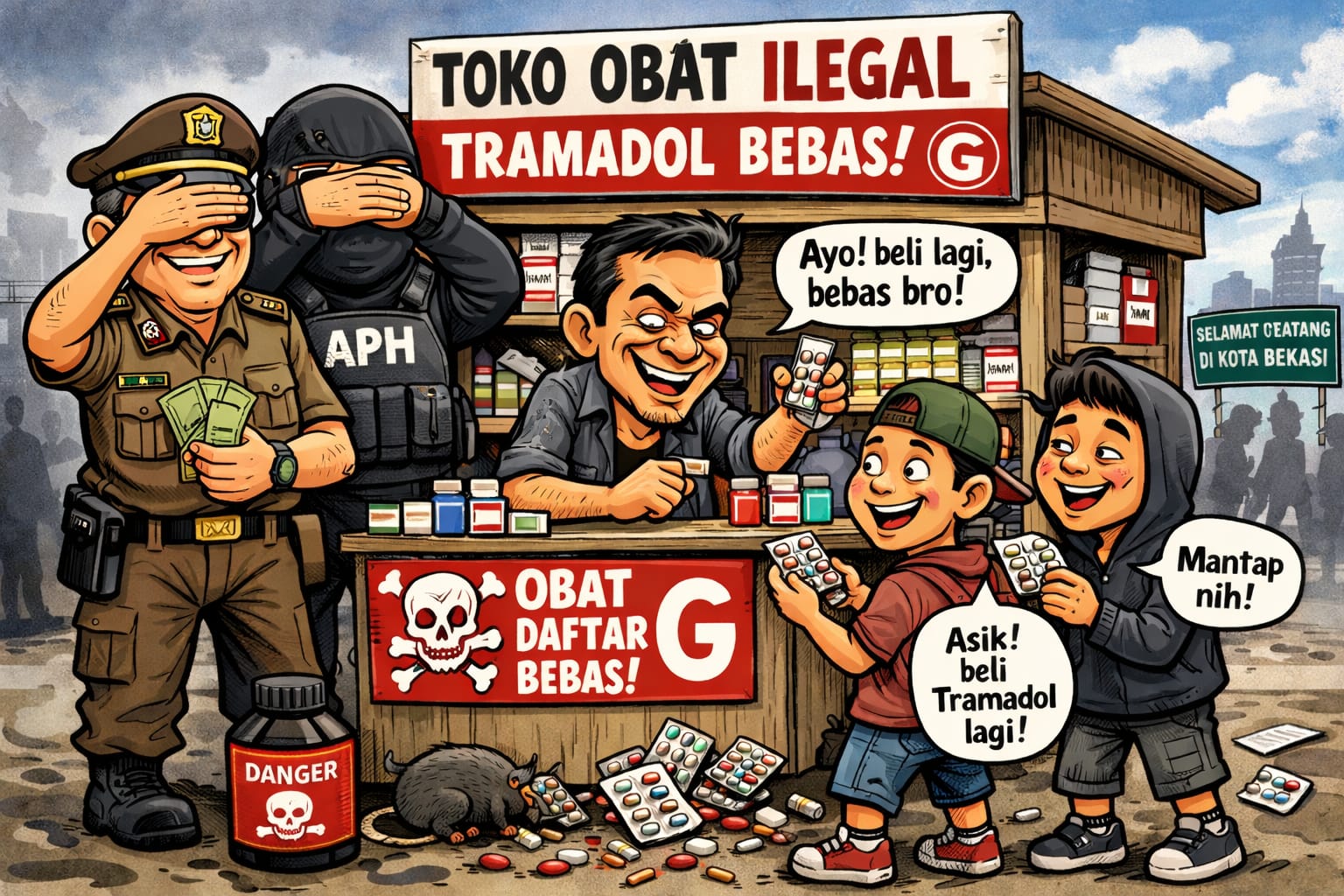 Toko yang diduga menjual obat ilegal golongan G (psikotropika) jenis Tramadol yang telah dilaporkan beberapa awak media beberapa hari lalu, hingga saat ini masih buka dan berjualan bebas di Jalan Cipendawa Lama, Kelurahan Bojong Menteng, Kecamatan Rawalumbu. ( Jumat,27 FEBRUARI 2026 )